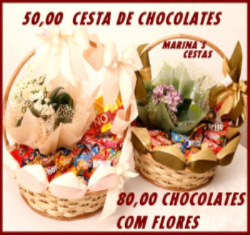 PREPARAMOS LINDAS CESTAS DE CHOCOLATES,TRUFFAS,CHOCOLATES VARIADOS,CHOCOLATES COM ROSAS,CHOCOLATES COM VINHO TINTO,CHOCOLATES COM FLORES,CHOCOLATES COM PELUCIA,CESTAS EM FORMATO DE CHOCOLATE,BOMBOM GIGANTE, LEMBRANDO QUE TODOS OS NOSSOS PRESENTES SÃO COM ENTREGA GRÁTIS.TEMOS CESTAS DE CAFÉ E BELOS RAMALHETES,CONFIRA NO SITE: WWW.MARINACESTASPERSONALIZADAS.COM.BR - CONTATOS: 32817539 /32817100 /85117957 / 86033857.